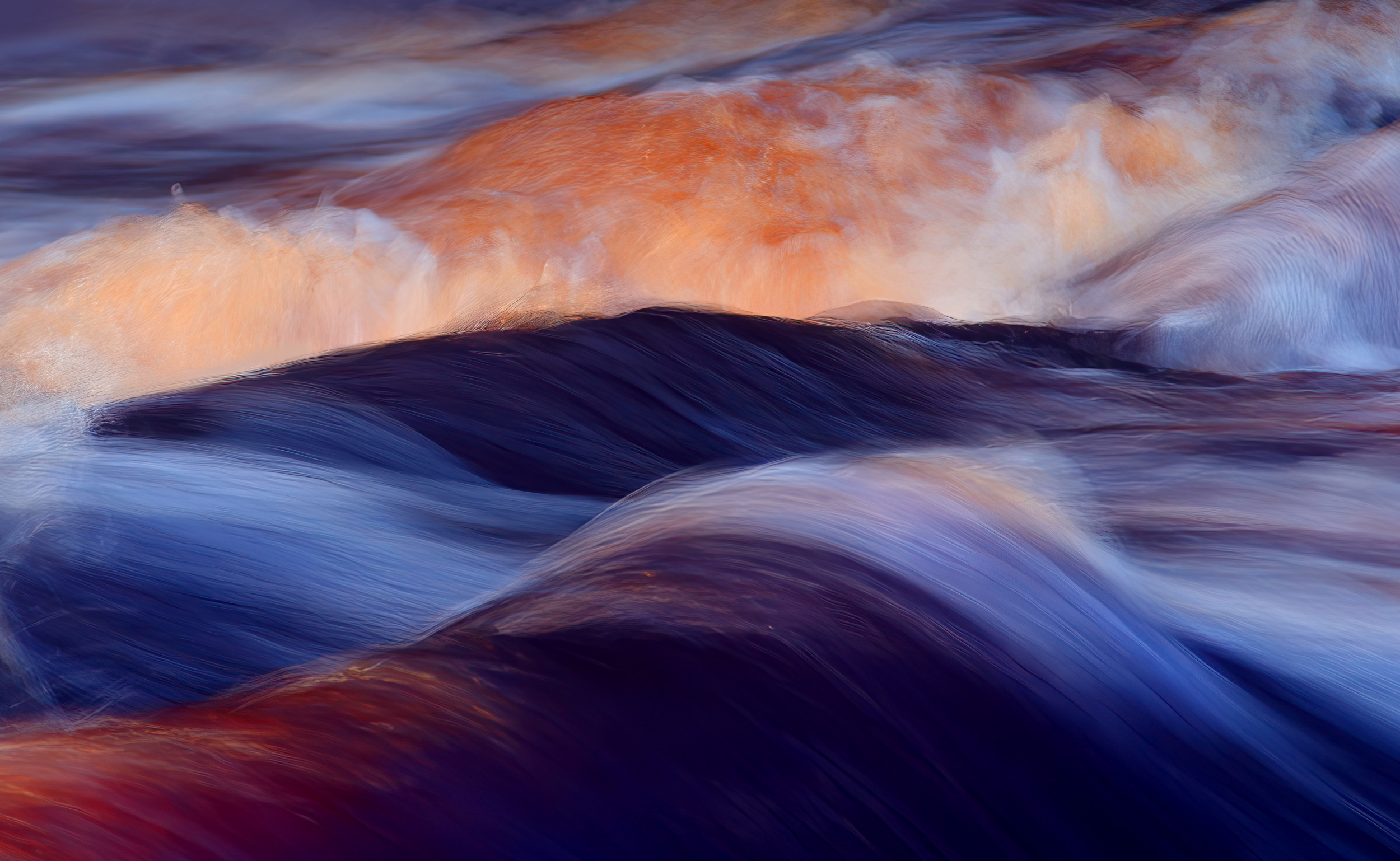 I was surrounded by imagery when growing up. My parents enjoyed art and all our walls were decorated with paintings. In junior high school, reproductions of modern art hung in the corridors. The nuances shone and spoke to me, and I felt the power of colour! Much later, I began to paint portraits and then made the acquaintance of Henri Matisse and Vincent van Gogh. I loved their strong, clear colours and disrespect for 'realism'. Their handling of colour reflected an inner reality and a joy for life while transcending boundaries. When I moved on to abstract painting and later photography, I brought all this into my creations. It works especially well for images of water. After all, water is both substantial and abstract, it is fleeting and light, poetic and beautiful, but also swirling and sometimes dangerous. My picture 'By the River' is an example of it. It is substantial, abstract, and colourful. I've highlighted a small part of a wave and accentuated the colour and shape. The river flows next to a waterfall and the surrounding land is moss land, rich in iron. Therefore, the foam turns reddish completely naturally.